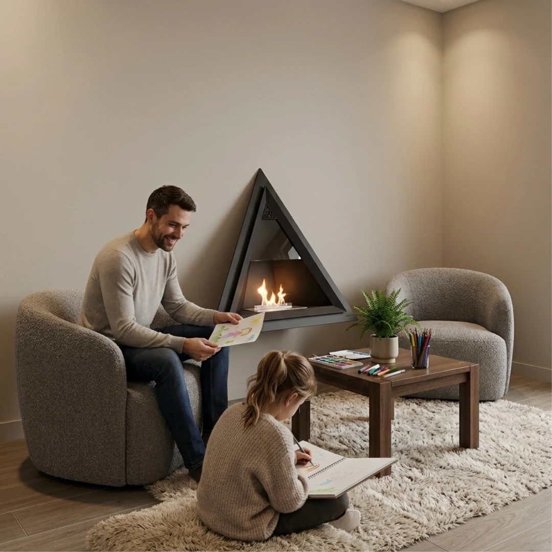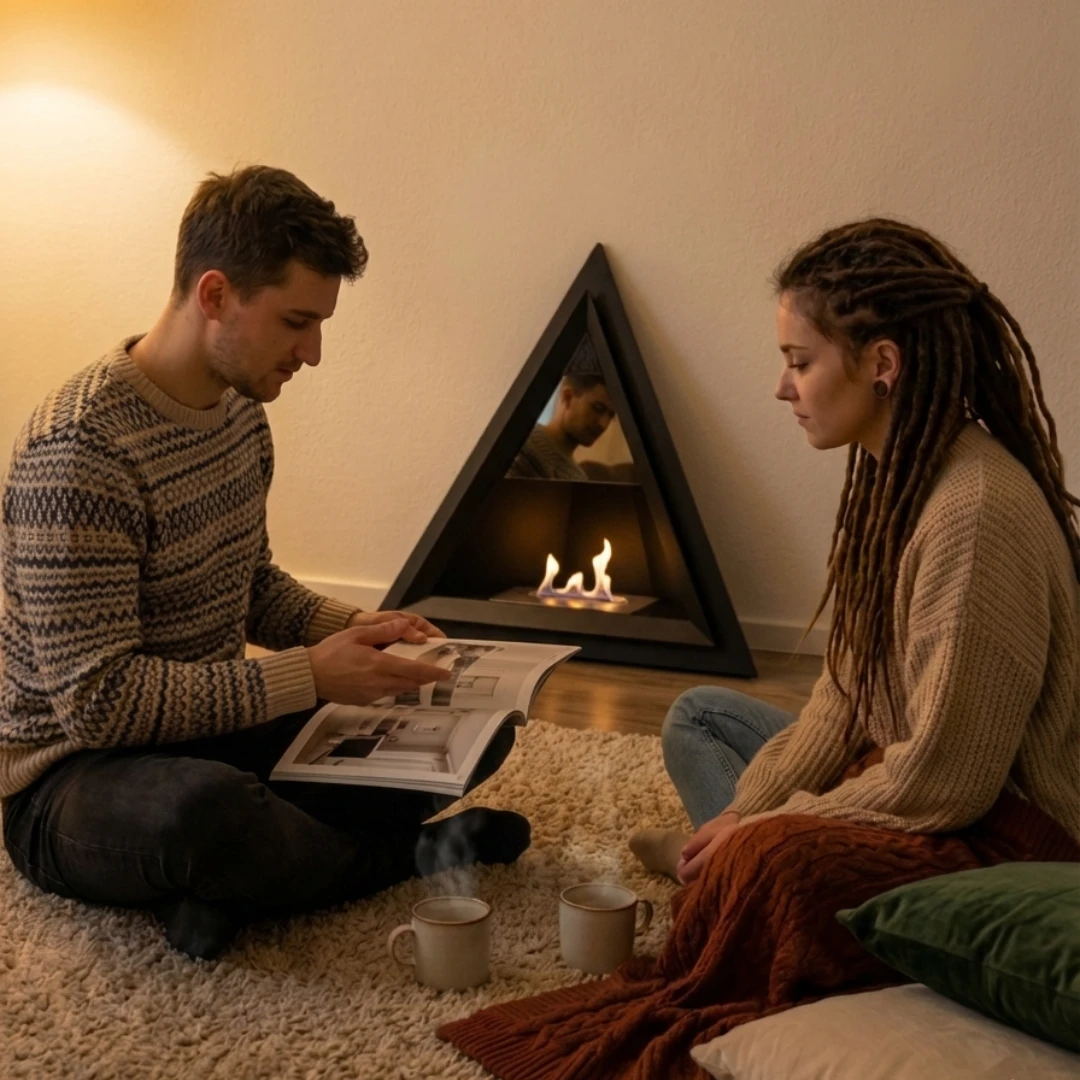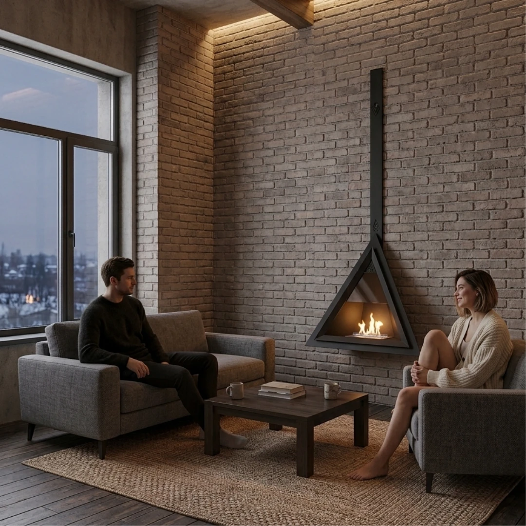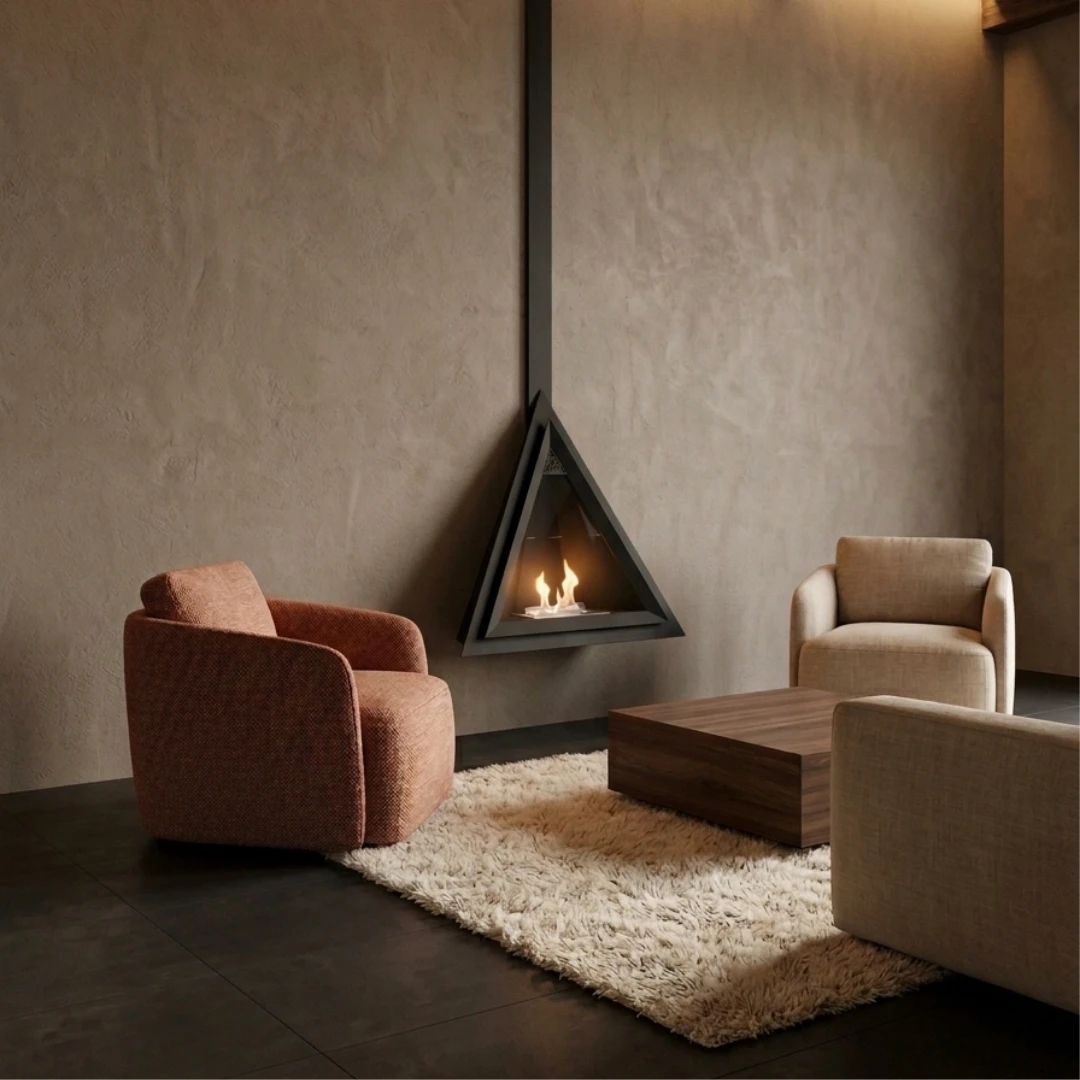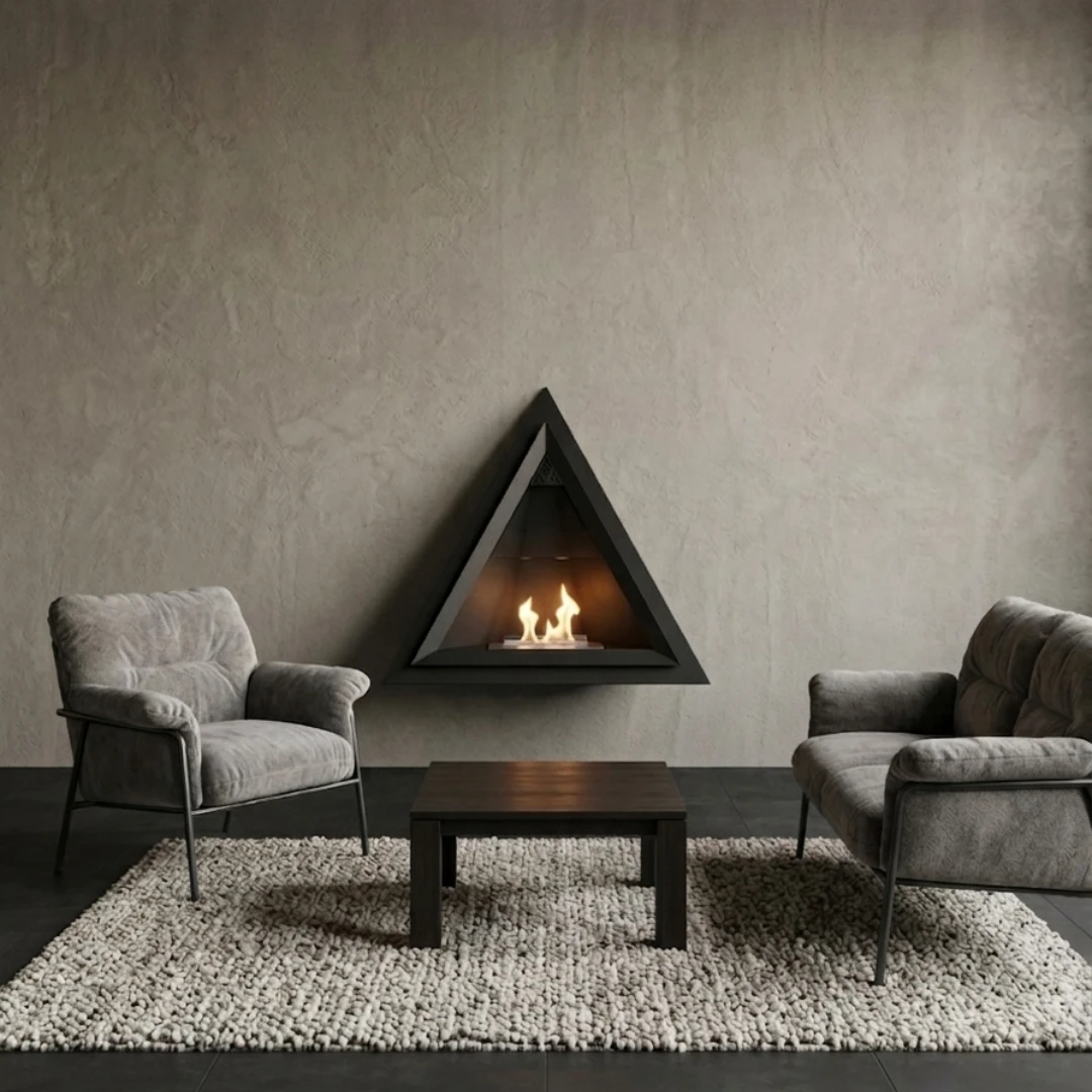 Πιστεύατε ότι η τριγωνική αισθητική του Trigon Corner ήταν μόνο για γωνίες; Γνωρίστε το Trigon Flat — τον δίδυμο αδερφό του, σχεδιασμένο ειδικά για τοποθέτηση σε επίπεδο τοίχο. Είναι η ίδια αιωρούμενη φλόγα, τα ίδια μπρούταλ υλικά (χάλυβας έως 2mm) και ο ίδιος μελετημένος σχεδιασμός, αλλά τώρα — σε οποιοδήποτε σημείο του διαμερίσματος ή του σπιτιού σας. Αυτό είναι ένα γλυπτό από χάλυβα και φωτιά που δεν χρειάζεται γωνία για να είναι το κέντρο της έλξης του εσωτερικού σας χώρου.